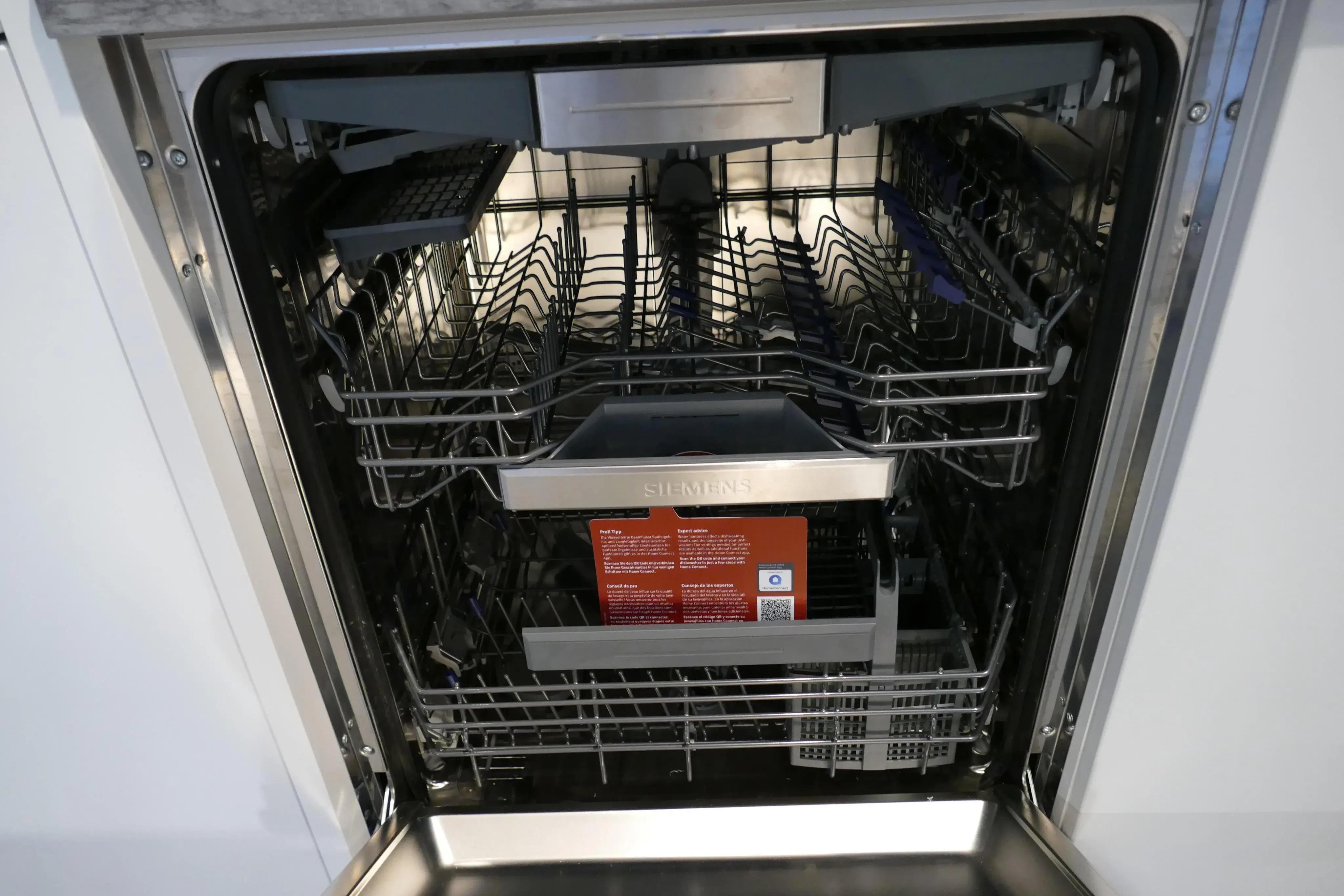 Der große XXL Geschirrspüler mit Besteckschublade bietet viel Stauraum für das dreckige Geschirr zum Reinigen.
