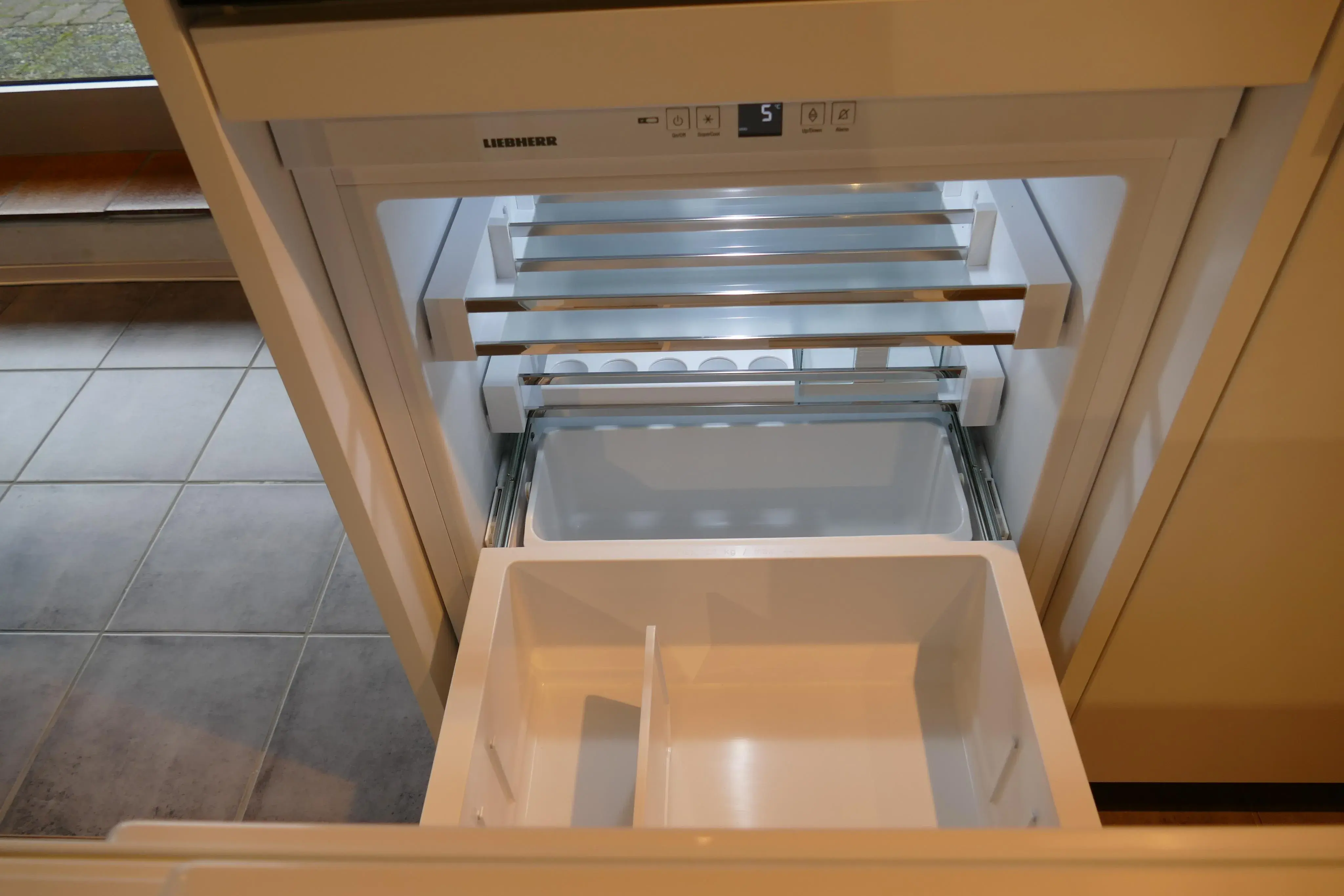 Unter dem Backofen befindet sich der Kühlschrank.